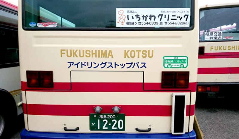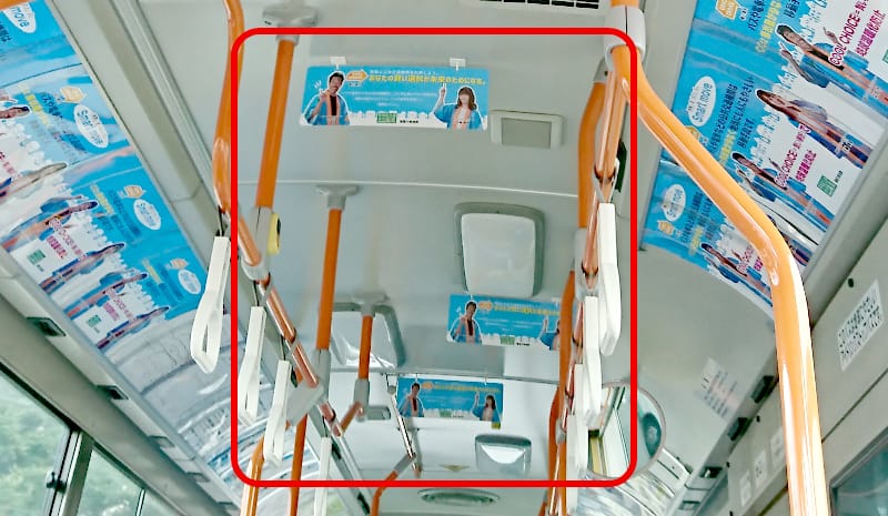 掲出場所:バス車体三面 (バス前面、降口を除く窓下)